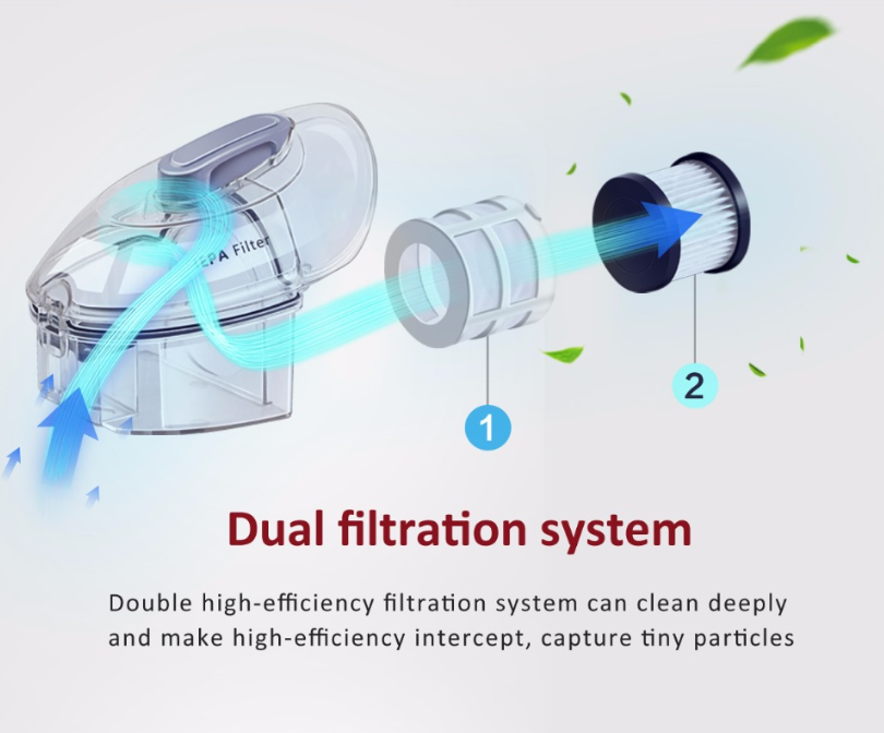 • Double high-efficiency filtration system can clean deeply and make high-efficiency intercept, capture tiny particles