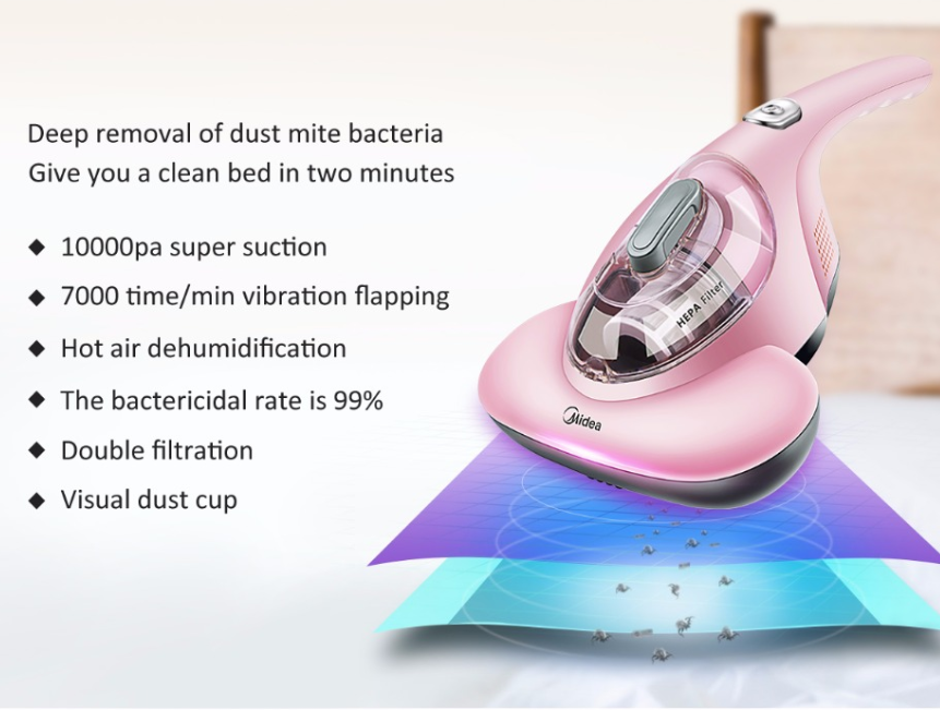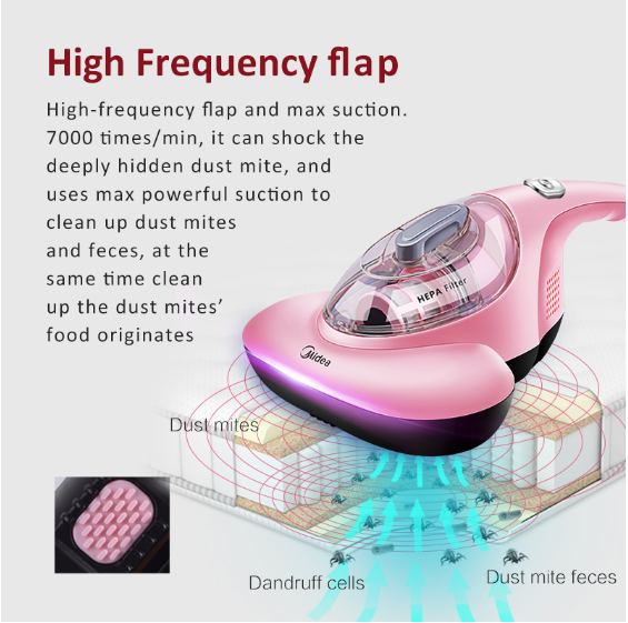 • High-frequency flap and max suction. 7000 times/min, it can shock the deeply hidden dust mite, and uses max powerful suction to cleanupdust mitesand feces, at the same time clean up the dust mites’ food originates