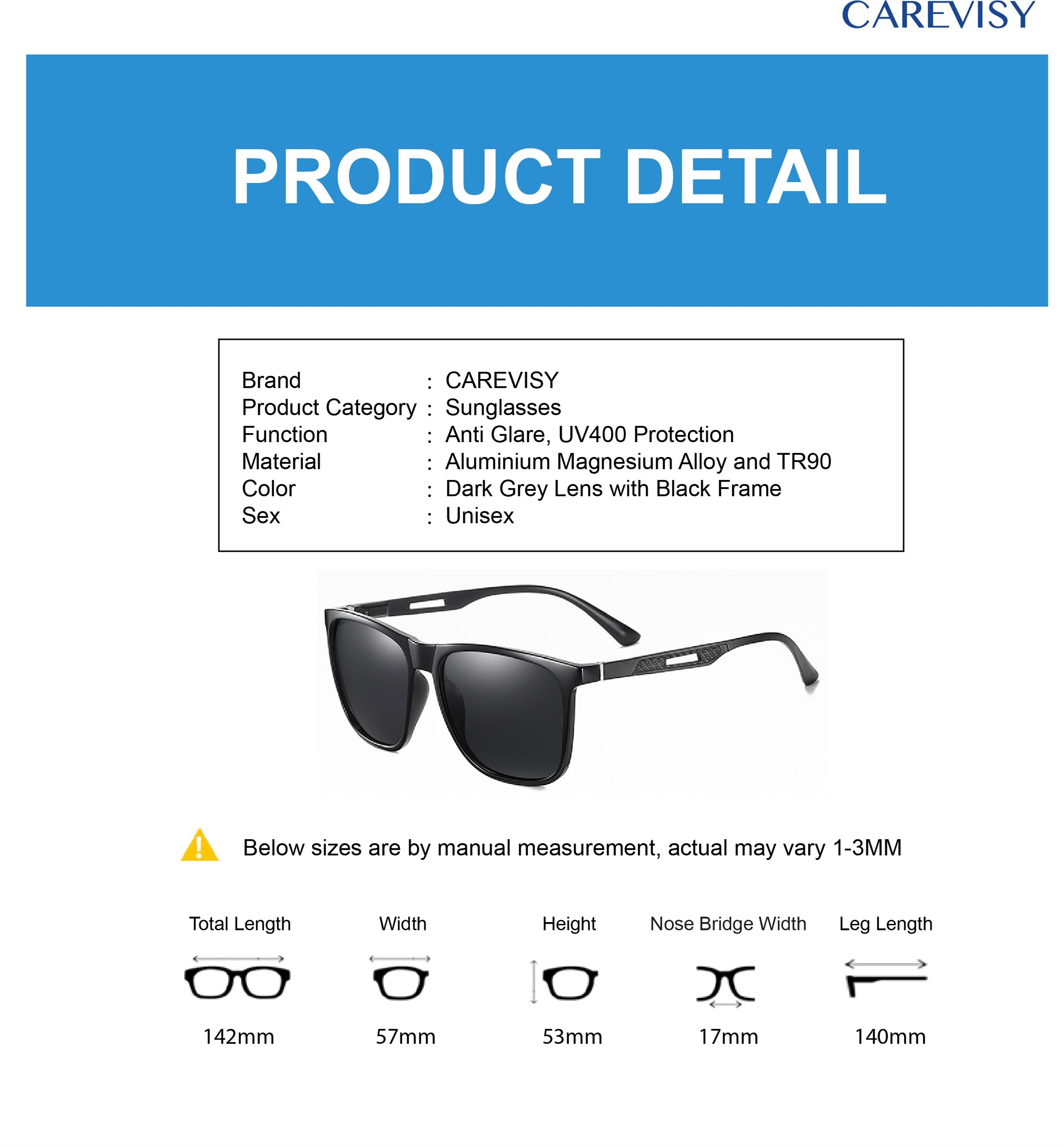 CAREVISY Fashion Polarized Sunglasses UV400 Protection Anti Glare Driving Fishing Sunglasses for Adults Men Women C6019