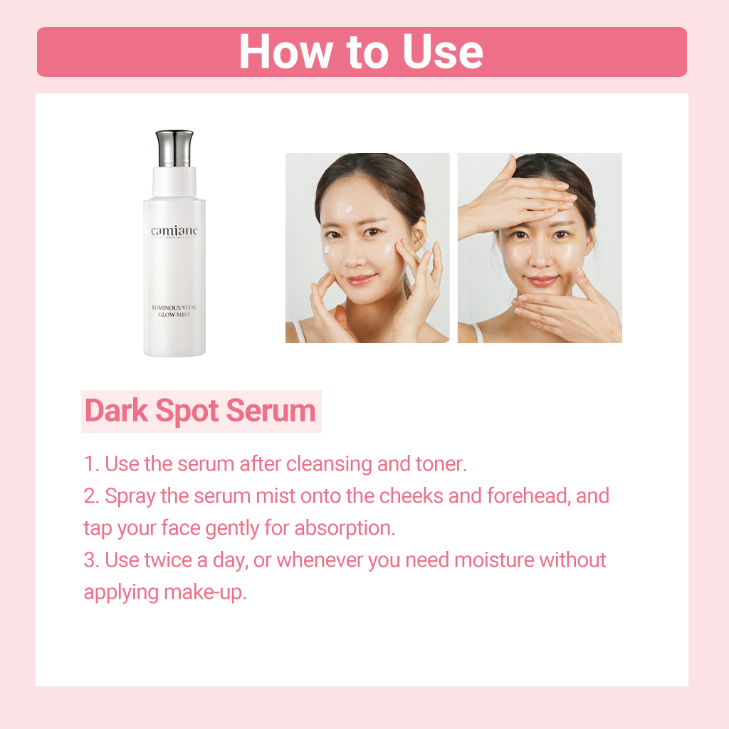 #Korea #K-beauty # Camiane #Luxury Spa #Skincare #Reduce Dark Spots #Even Skin Tone #Reduce Pigmentation #Brightening #Skin Elasticity #Moisturizing #Whitening #Reduce Wrinkles