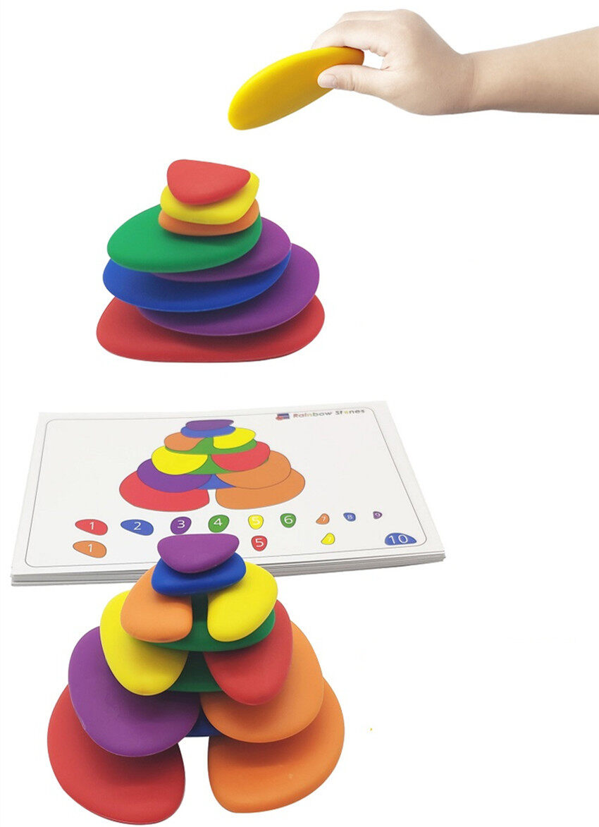 GREAT VALUE -- 20 double-sided activity cards are included to show colorful designs and ways to stack the pebbles. Use as a teaching aid to assist child creativity.