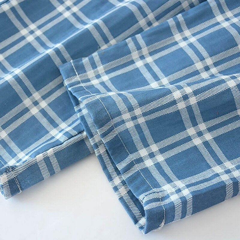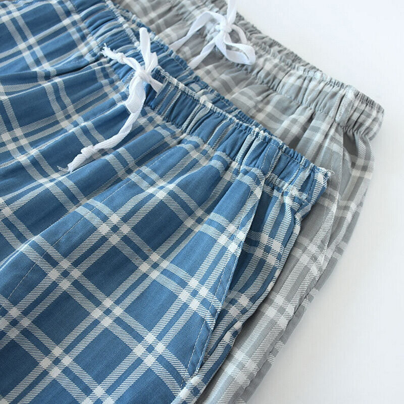 Cyprus Men's Cotton Gauze Trousers Plaid Knitted Sleep Shorts Pants For Women Pajamas Pants Bottoms Sleepwear Pajama Short Pijama Hombre
