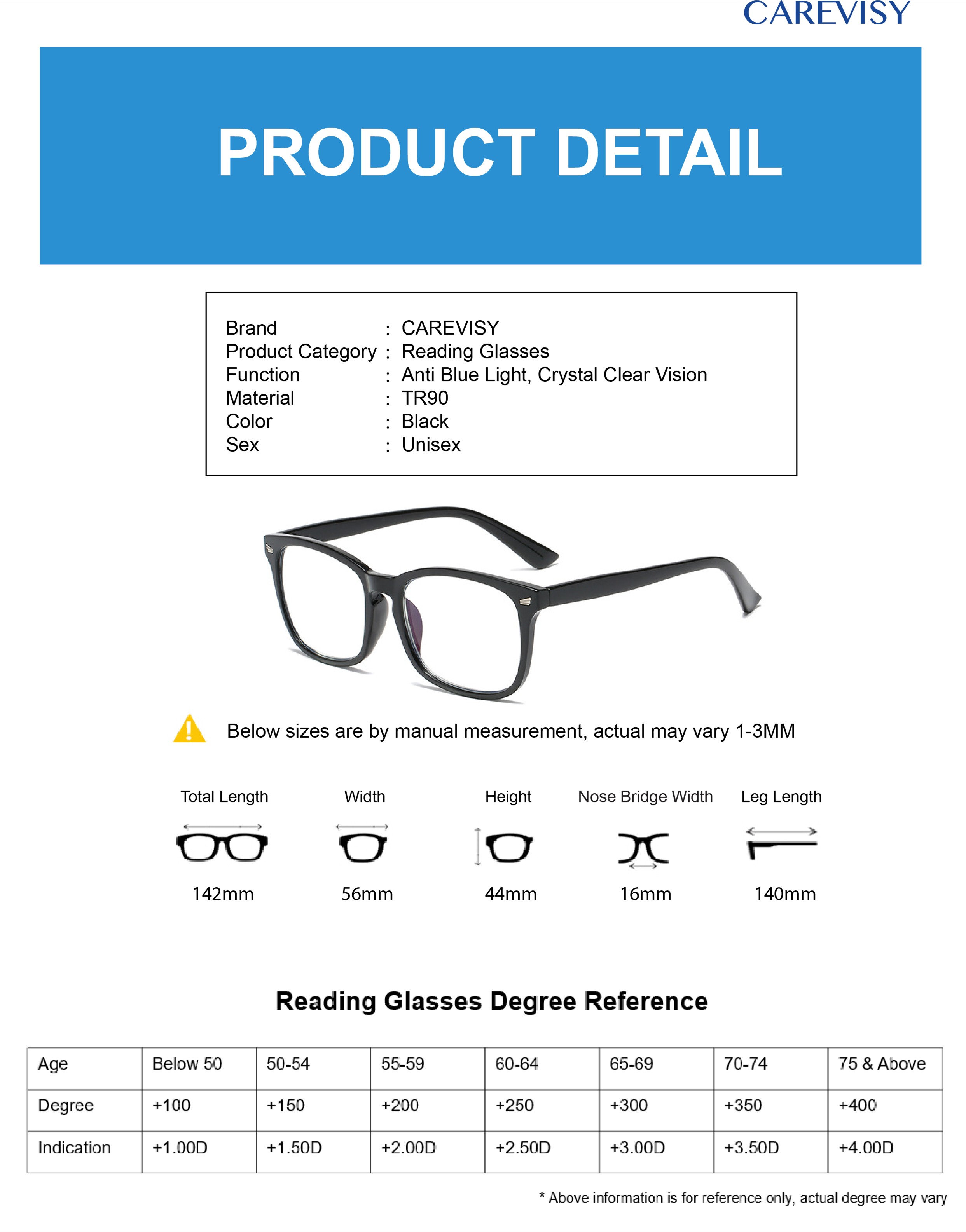 Welcome to CAREVISY, a professional Eyewear brand. We provide high quality Reading Glasses, Computer Glasses, Sunglasses and other Eyewear Accessories at affordable prices based in Singapore. Customer's satisfaction is our top priority. We valued customer's time and we will post out your order by next day. Afterwards, logistic team will pick up your parcel and delivery it to you, expected delivery time by logistic team is about 1-2 working days. Feel free to contact us if you have any queries. Care for your vision and enjoy your shopping now!