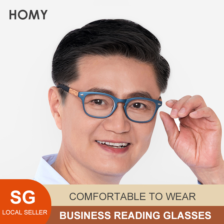[SG Seller]HOMY Fashion Simple Business HD Presbyopia Eyewear Reading Glasses Wood Pattern Unisex Portable Ultra Light High Quality (Gift for parents)(HM9001T)Blue +100(+1.0)+150(+1.5)+200(+2.0)+250(2