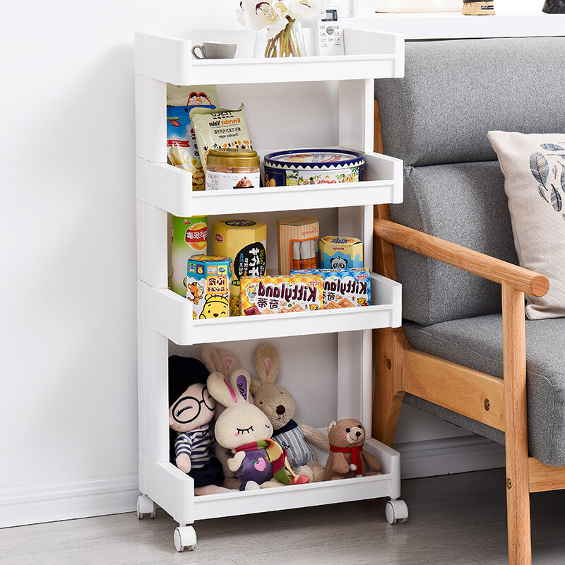 Movable Bookshelf Trolley with Wheels Storage Rack Floor Small Bedroom Storage Rack Living Room Multi-Layer Storage Rack
