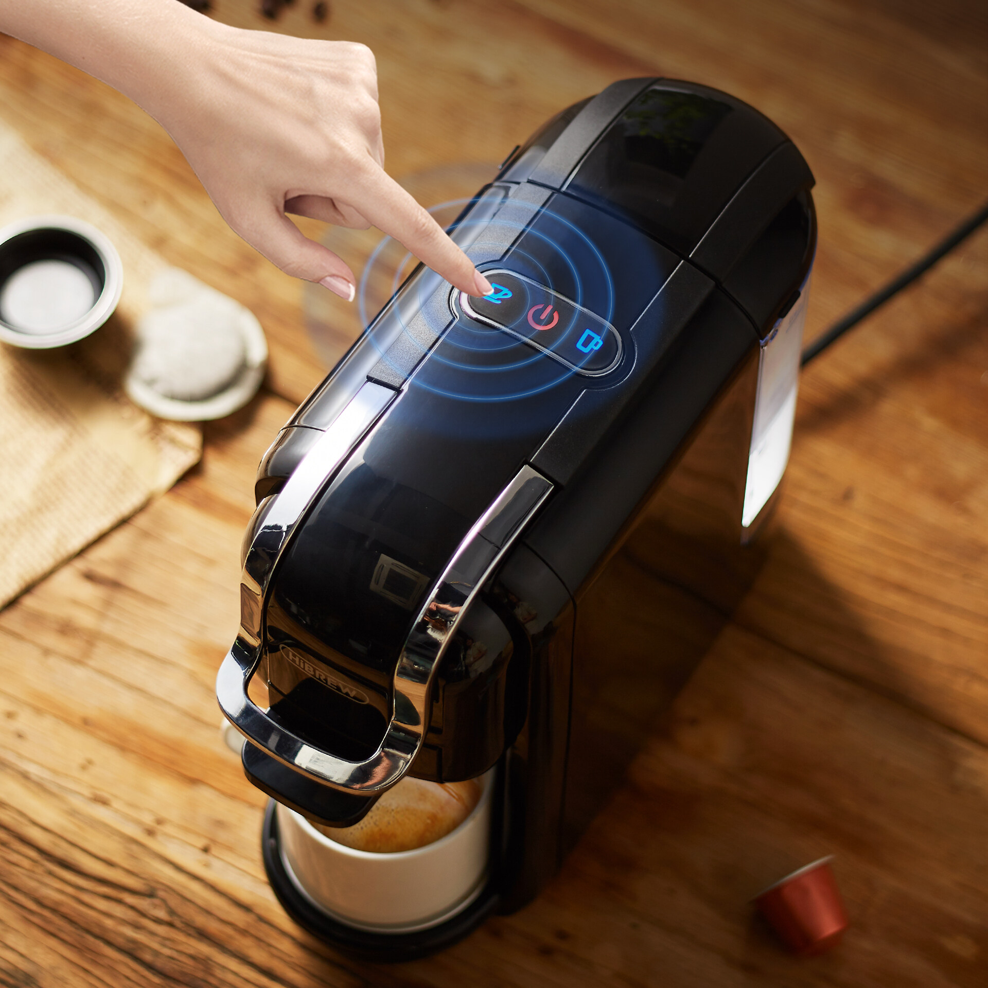 - Nespresso capsule (and other brands of the same size, such as Doi Chang, Starbucks Jacobs)