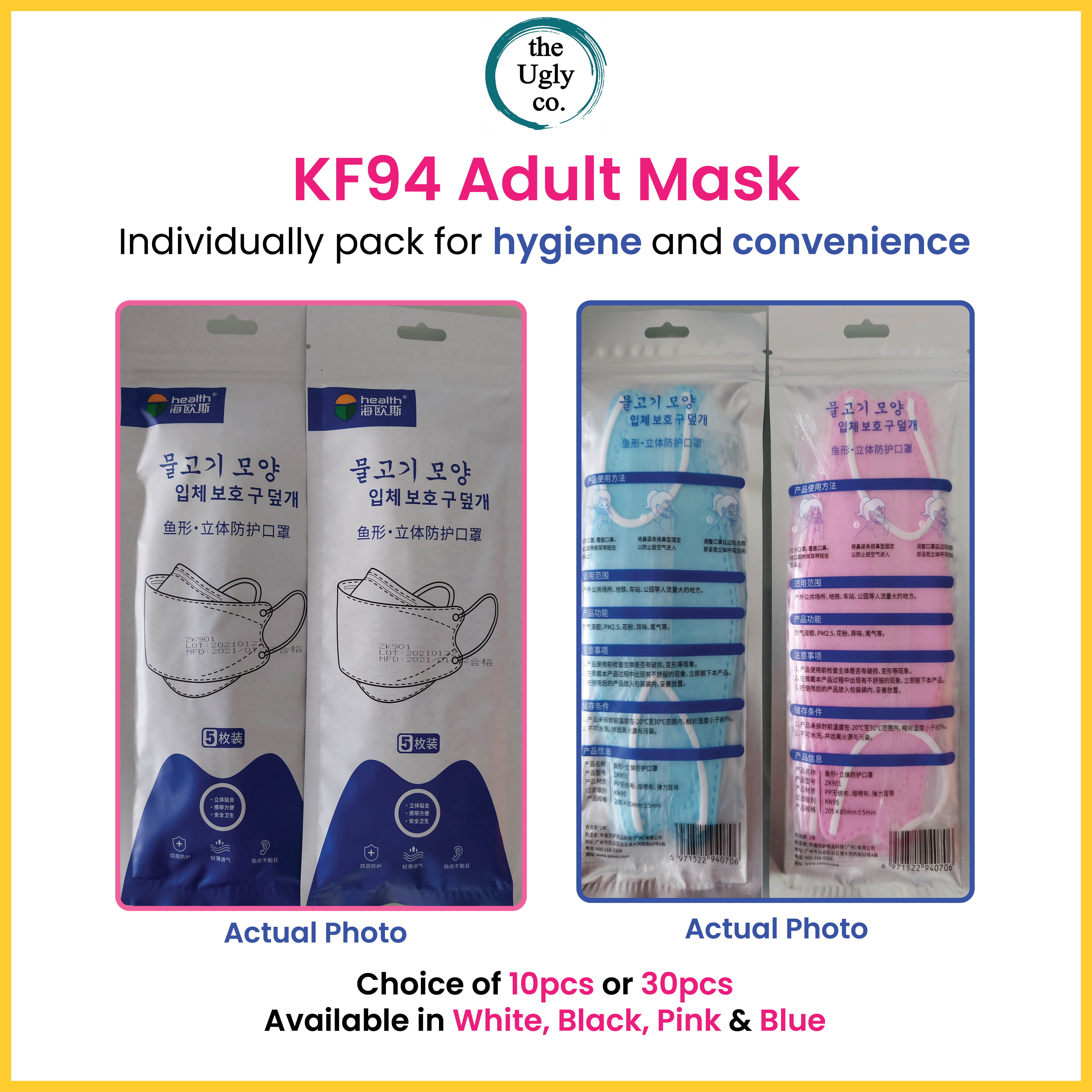 KF94 Mask Adult Individual Pack Singapore Seller, Korean Design Disposable 4 ply Face Protection, Black, White, Pink, antibacterial, no fog, individually packed, breathable, Korea sports non surgical