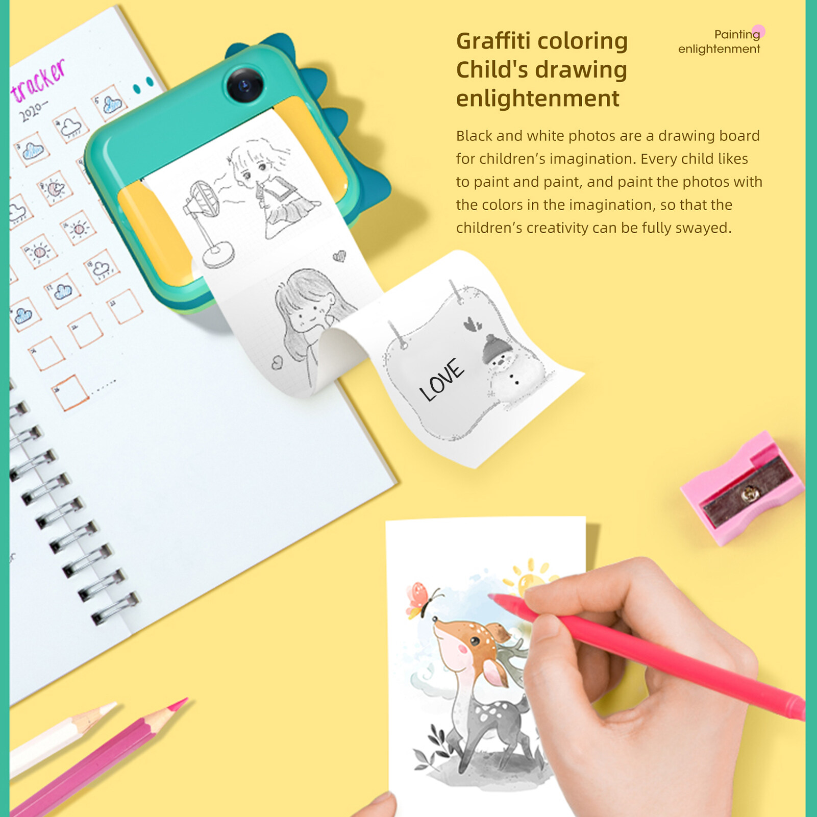 Features:3-IN-1 & Support Transmission- Equipped with 12 million pixels of one-click switching front and rear cameras and 1080P HD video,the instant camera can not only take pictures and shoot videos but also print photos. It realizes real-time imaging,retains better quality of colorful and vivid photos, and lets kids record a happy childhood.It supports WIFI transmission,easier to download photos to the mobile phone and share to social platfor anytime.Customized for Kids- The 2.4-inch IPS screen has clear,smooth,and real effects to reduce eye irritation.With a simple and easy-to-understanding operating system designed for children to stimulate children's self-confidence.Applicable to 2 Types of Paper- In addition to ordinary thermal paper,the digital camera can also use self-adhesive photo paper.Photographs printed on self-adhesive photo paper can be directly pasted,making it easier to make notes.Interesting Photo Stickers- Abundant,interesting and original stickers make photograph more fascinating and amusing,lead kids to find endless pleasure,let kids and parents play together and promote their relationship.Perfect Gift - With rich and interesting filters,it is a perfect DIY gift for kids in Children's day, birthday, Christmas, daily life and holiday travel, keeping them away from TV, games and allow them to be creative and imaginative.Specifications: Color: Pink/Green(optonal) Display Screen: 2.4 inches IPS Screen Maximum Expansion Capacity: 32G Lithium Battery: 5V/1500mAh Print Resolution: 200DPI Pixel: 12 million pixels,front and rear dual cameras Product Size: 90*79*40mm / 3.5 * 3.1 * 1.6in Product Weight: 159g / 5.6oz Package Size: 12.3*8.6*6.8cm / 4.8 * 3.4 * 2.7in Package Weight: 345g / 12.2ozPacking List: 1 * Printing Camera 1 * Roll Self-adhesive Printing Paper 1 * Roll Thermal Printing Paper 1 * User Manual 1 * Cartoon Sticker 1 * Data Line(Lanyard) 1 * TF Card