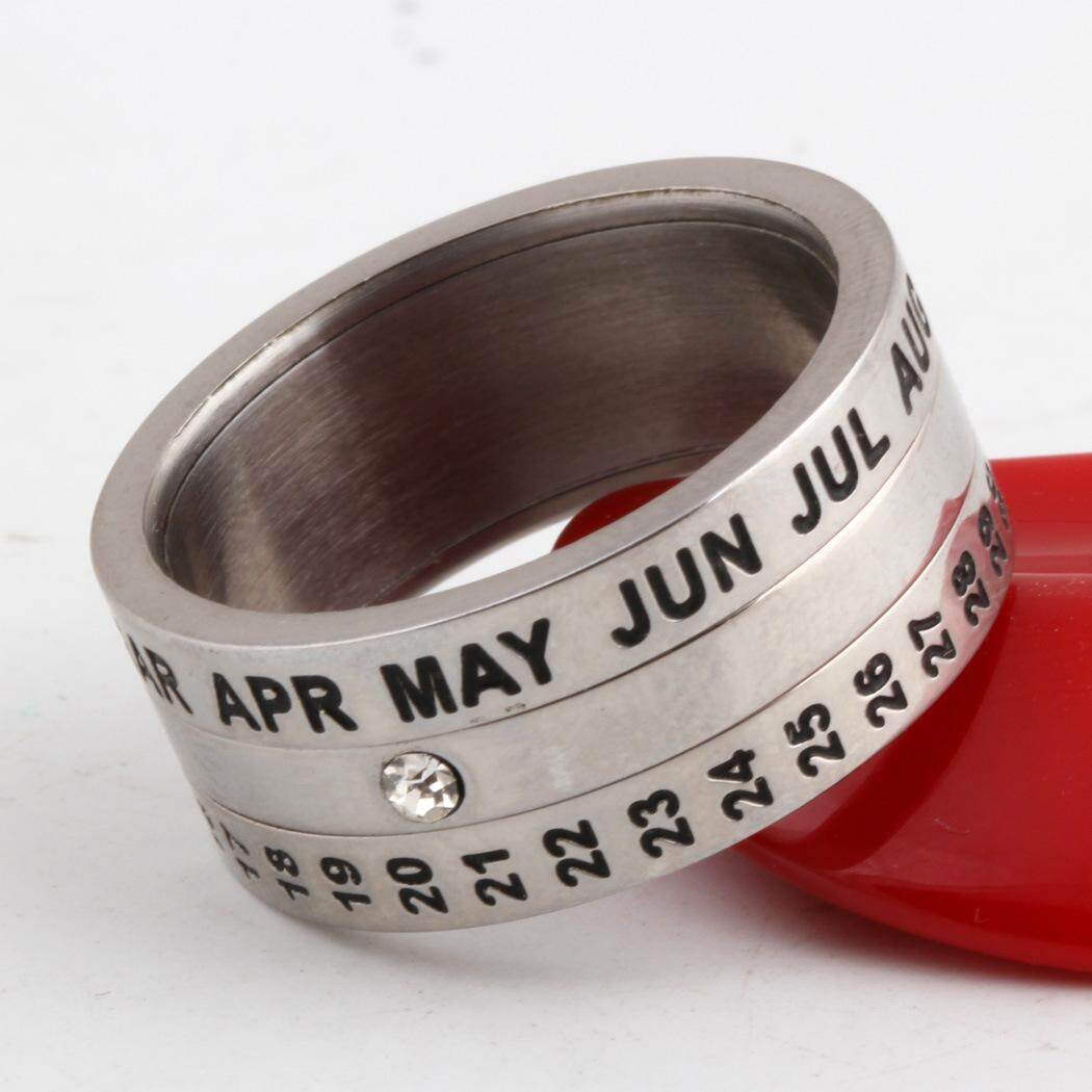 AVECON Rotatable calendar stainless steel ring fashion ring index finger titanium steel for men size 7-12