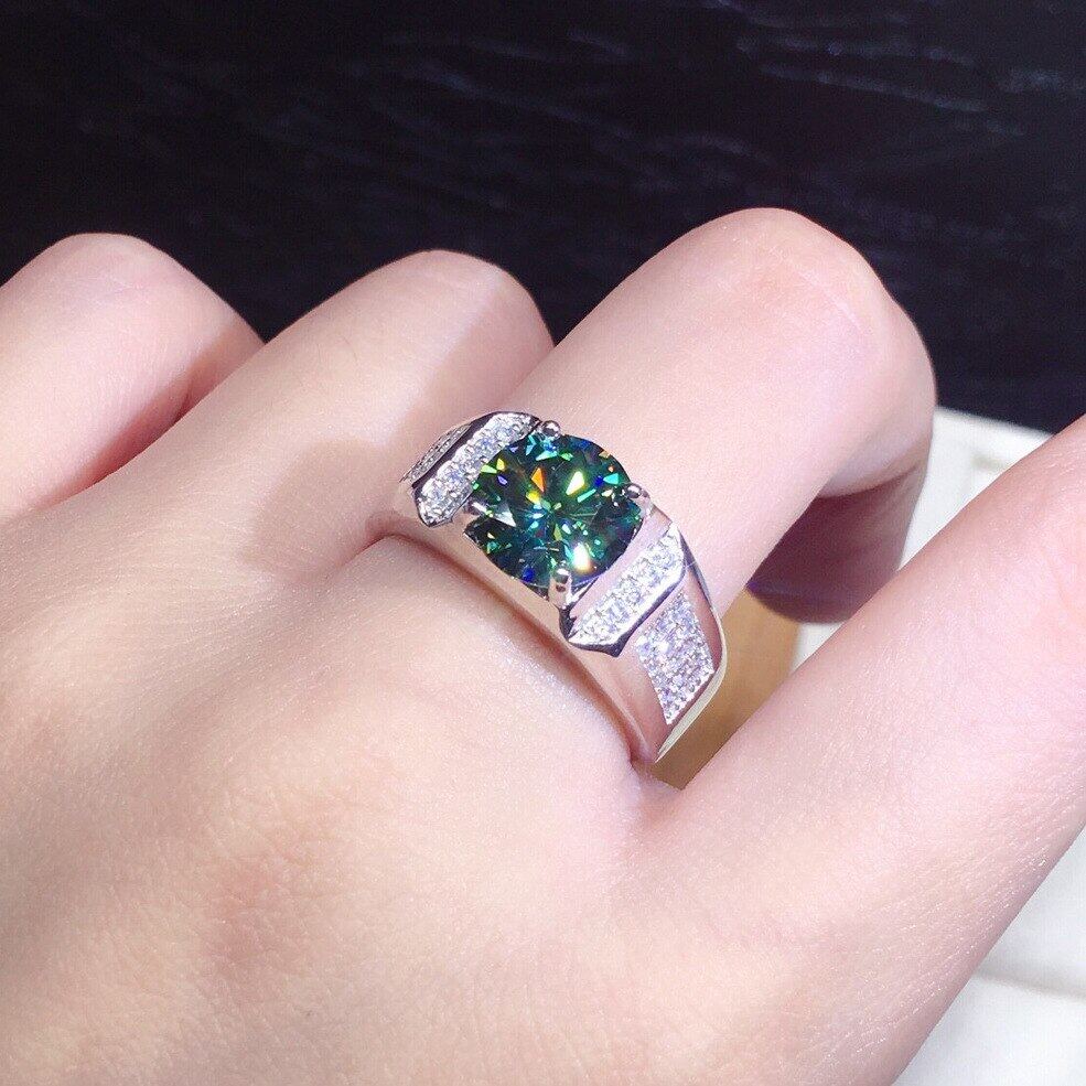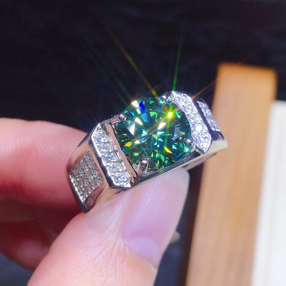 Solitaire Male 2ct Green Diamond Ring 925 sterling silver Jewelry Engagement Wedding band Rings for men Luxury Party accessory