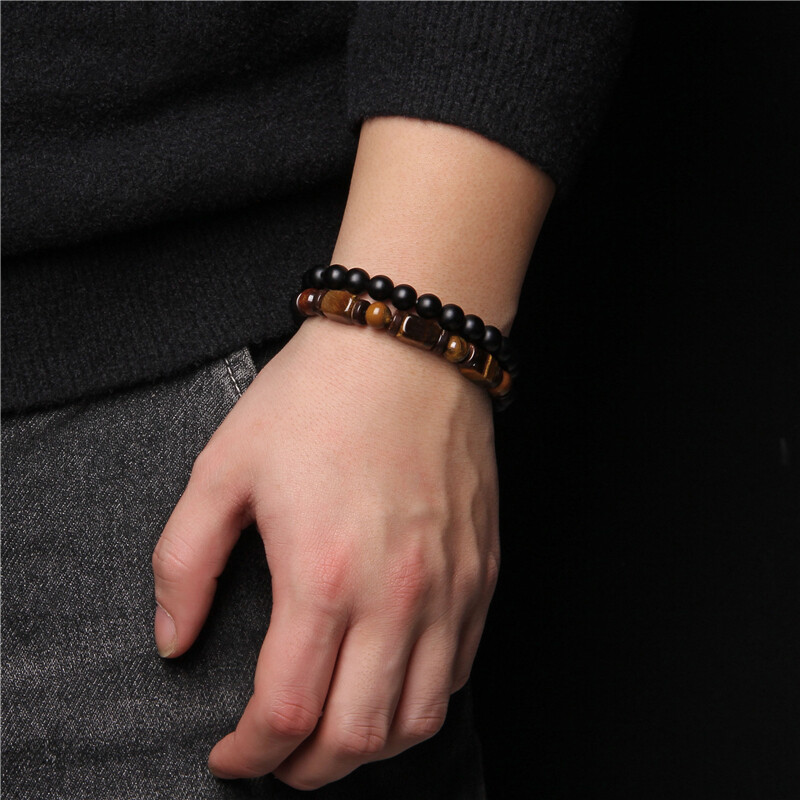 2PC/set Tiger Eye & Hematite & Black Obsidian Bracelets Men Women Natural Stone Magnetic Therapy Weight Loss Bracelet