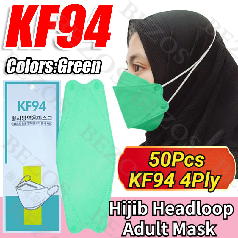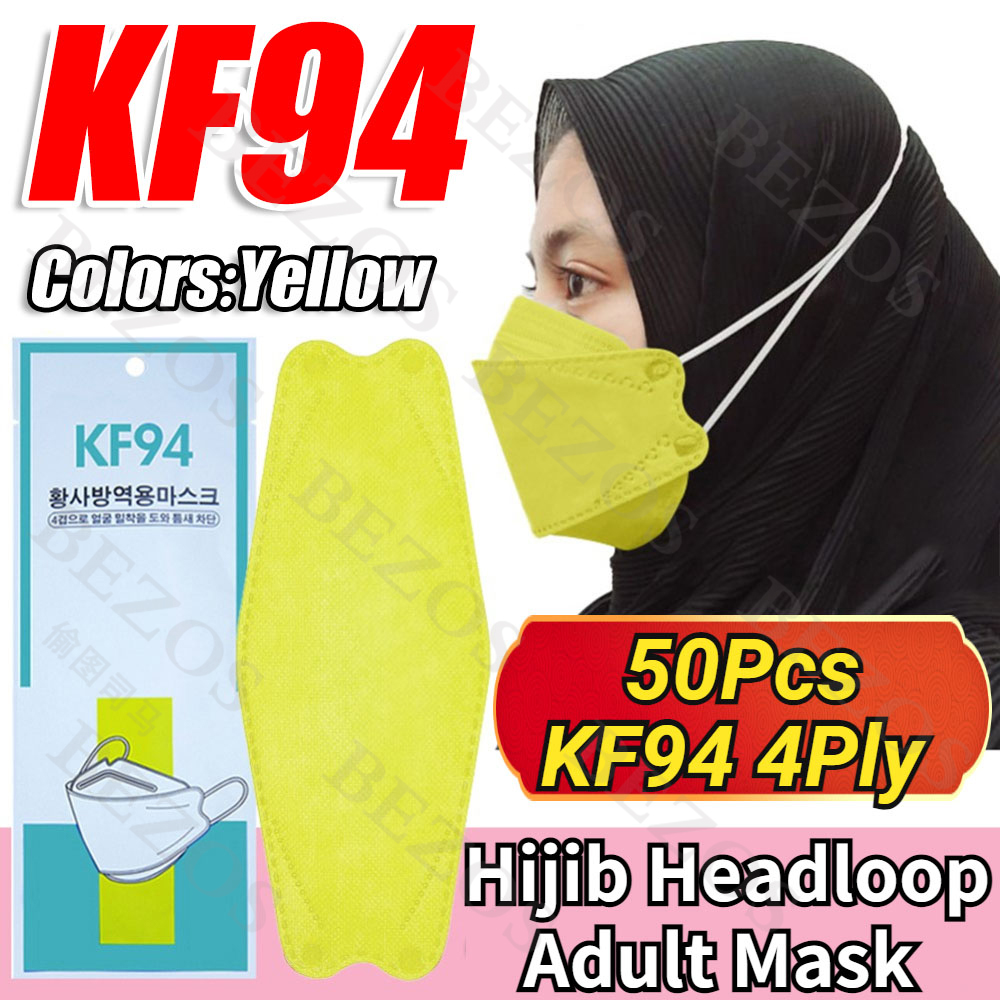 【Hijab】14Colors 50PCS KF94 Headloop Hijab Korean Topeng Muka Headloop 4Ply High Quality FaceMask Topeng Muka Tudung Kpop Kdrama Protection Korea Respiratory Products Cover Prevent Influenza and Antiba