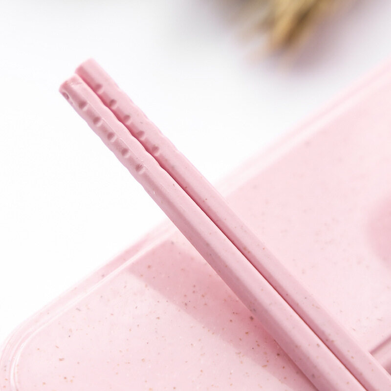 Environmental Portable Reusable Spoon Fork Travel Picnic Chopsticks Wheat Straw Tableware Cutlery Set With Carrying Box