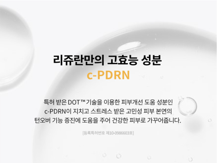 Skin improvement ingredients using patented DOT technology help c-PDRN improve the natural turnover function of tired, stressed, troubled skin to make healthy skin.