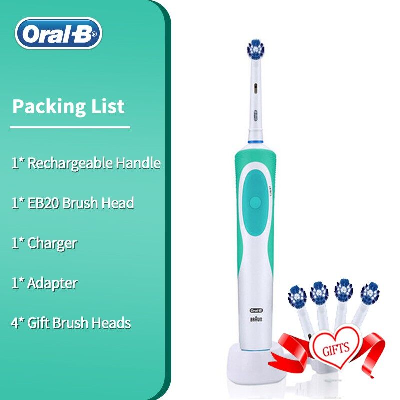Oral B Electric Toothbrush Rechargeable 100% Waterproof Soft Bristle with 4 Free Heads As Gift