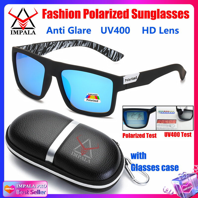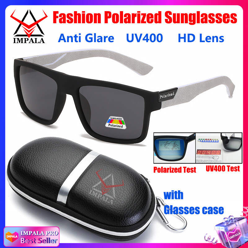 IMPALA PG1660L Fashion Men Women Polarized Sunglasses Anti Glare Driving Fishing Sun Glasses for Men Korean Style Black Spectacles UV400 Lens with Glasses Case