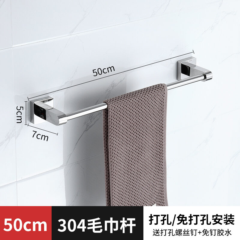 Towel Bar Punch-free Bathroom 304 Stainless Steel Thickened Towel Rack Bathroom Wall Hanging Rack Single Rod