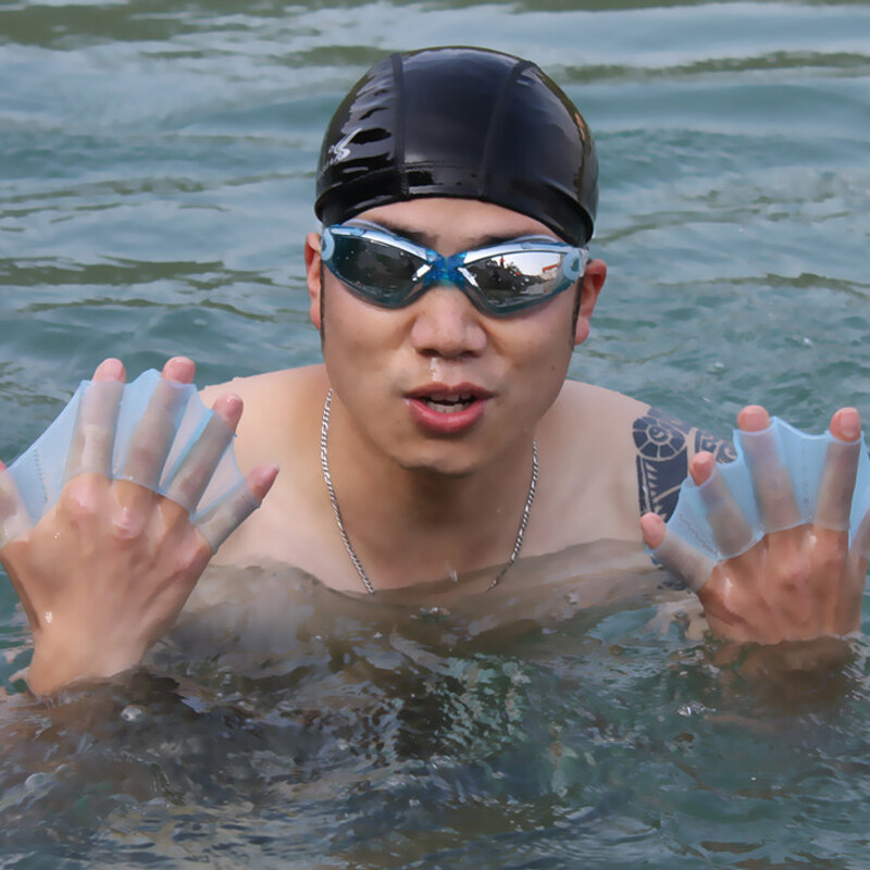 Silicone Palm Hand Swimming Fins Hand Webbed Gloves Swimming Flippers Triathlon Training Fins Fast Finger Gloves Web Paddle