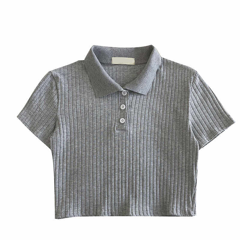 Polo shirt for women korean fever style short sleeve skinny knit crop top tshirt