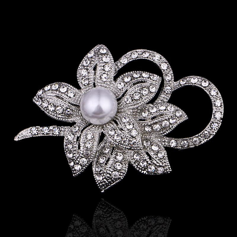 Elegant Swan Amethyst Flower Brooch Diamond Pin Ladies Luxury Pearl Crystal Silver Plated Fashion Clothes Accessories