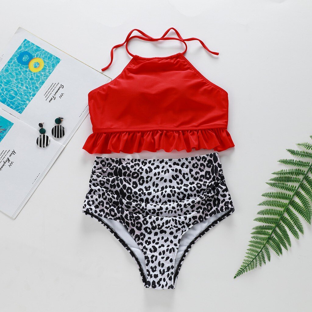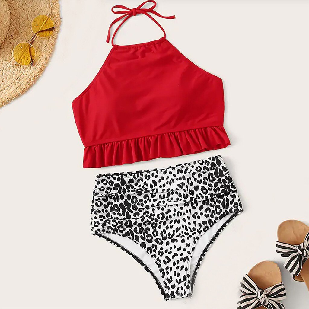 Women Striped Push Up High Cut Hight Waist Halter Bikini Set Two Piece Swimsuit