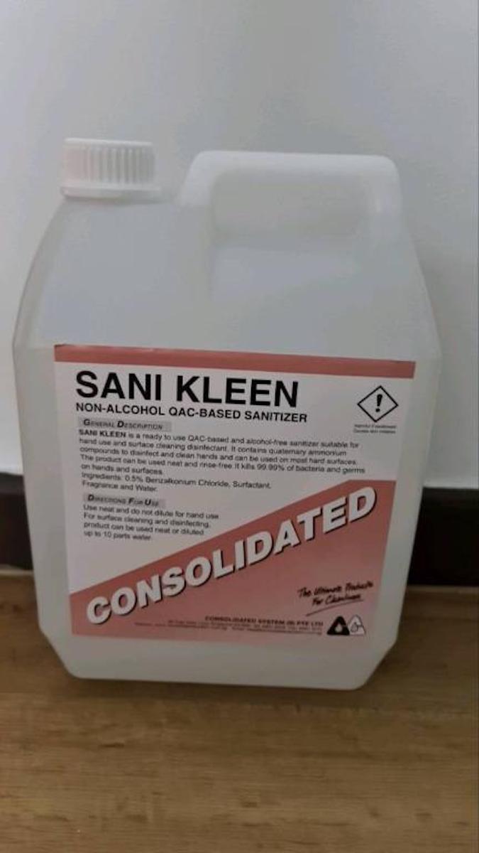 Sani Kleen is an alcohol-free, water-based hand sanitizer suitable for rinse-free hand application and surfaces. It contains over QACs and kills 99.999% of bacteria and germs on hands and surfaces without water. It contains QAC disinfectants and can help with infection control. Product is recommended to be used neat to ensure full efficacy.