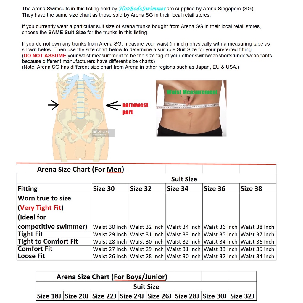 •Wear 1 size higher than your actual waist in inch is recommended for most swimmers