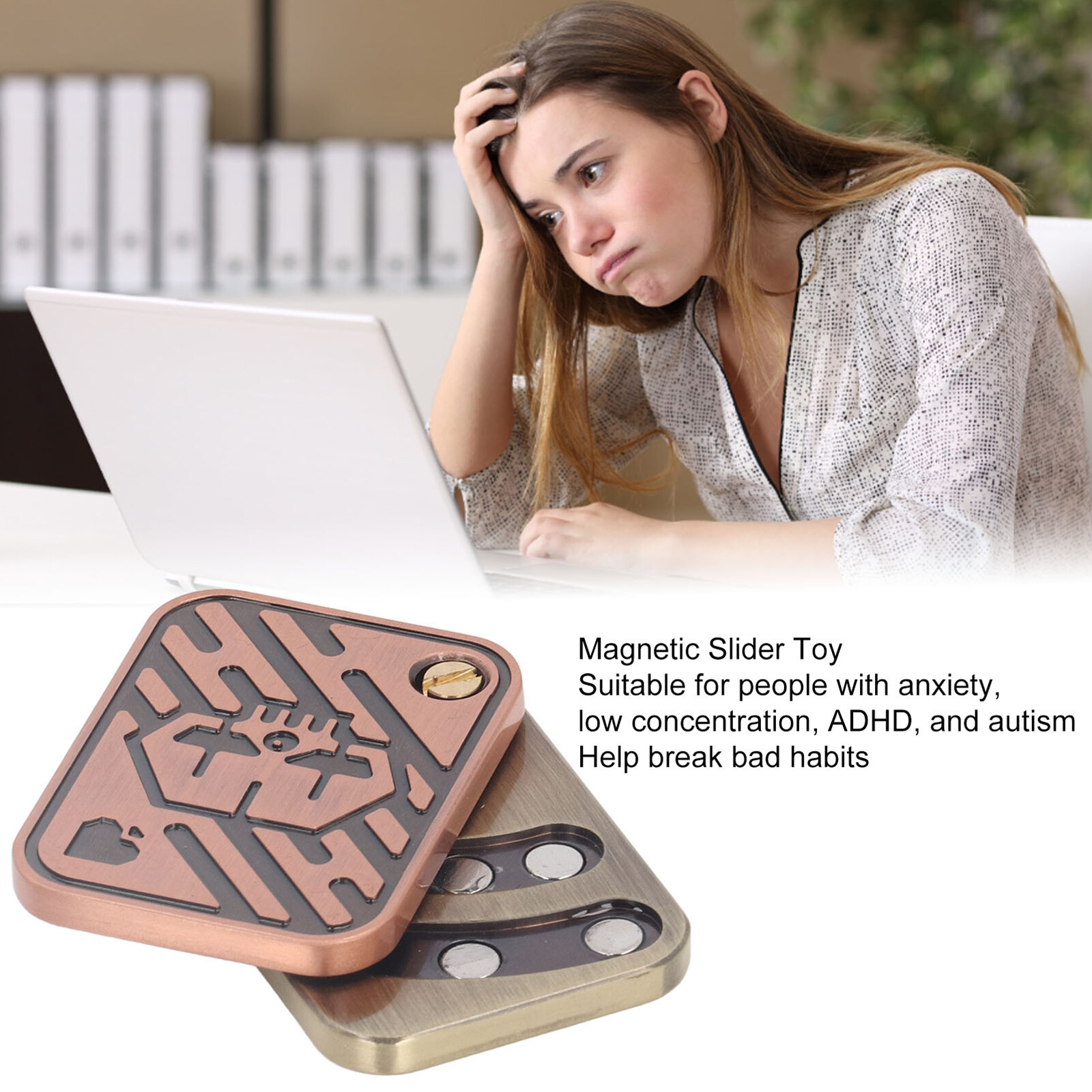 This magnetic slider is made of metal and the surface is electroplated, so it is very smooth and feels more comfortable. The slider is inlaid with magnets, and except for the side where the magnet is inlaid, the other surfaces are engraved with delicate playing card-like patterns. If you are a lover of EDC toys, this cool slider is for you.