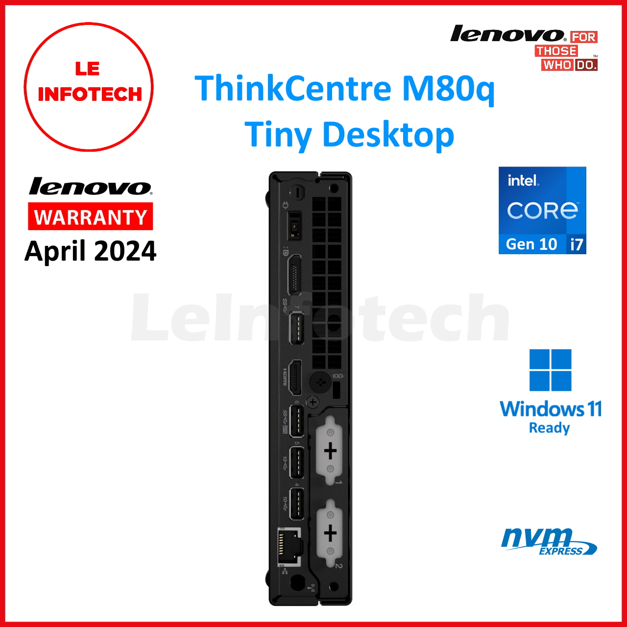 LENOVO ThinkCentre M80q Tiny Desktop 8-Core Intel i7-10700t 32GB 512GB SSD Win11 HDMI USB-C WiFi BT Warranty - Leinfotech