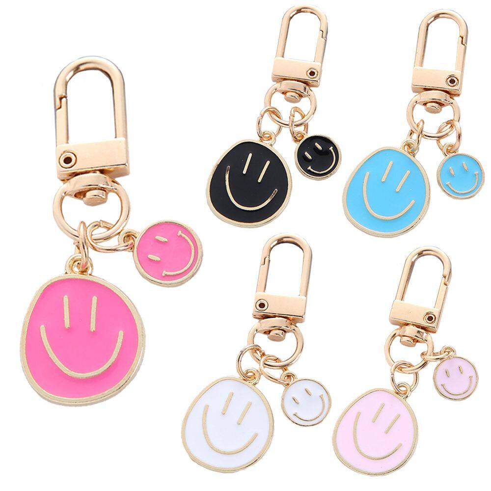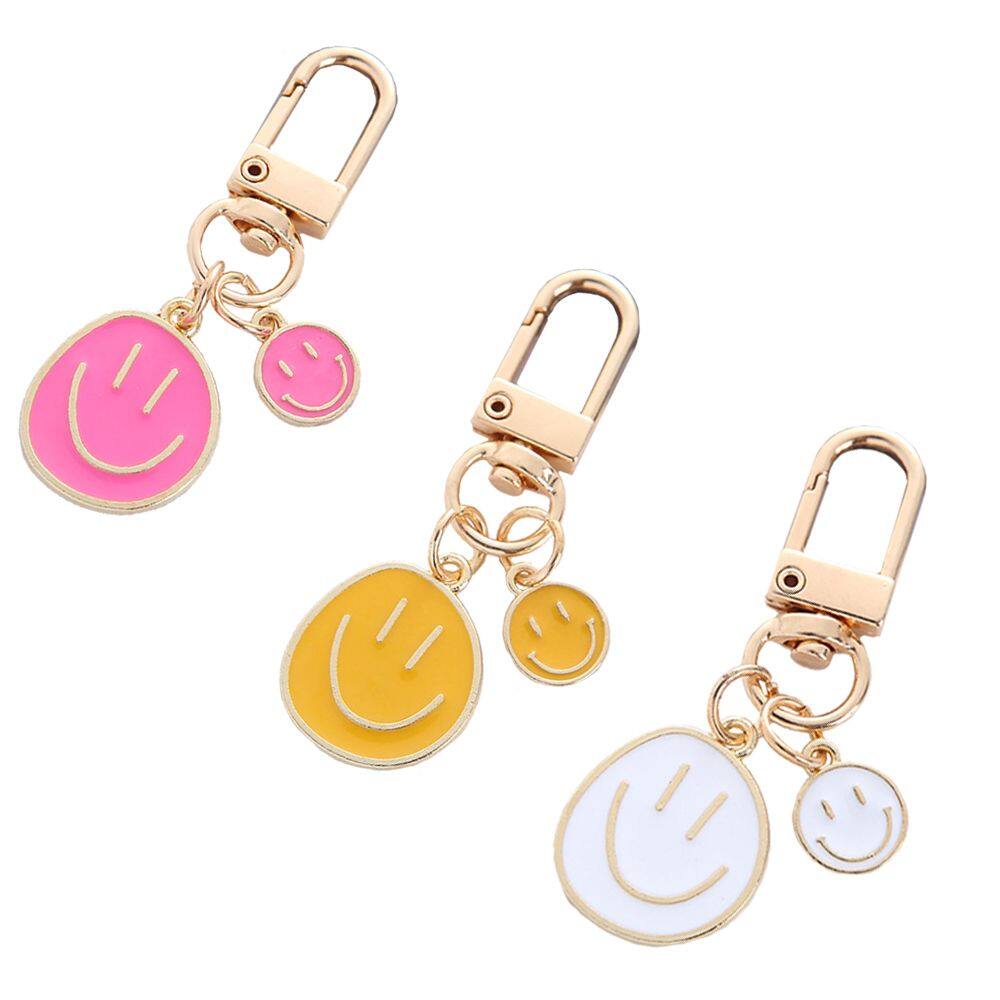 YANGW Creative Women Gift Accessories Jewelry Ornaments Car Key Ring Friends Couples Smile Face Keychain Irregular Round Keyring Handbag Charms Key Chain
