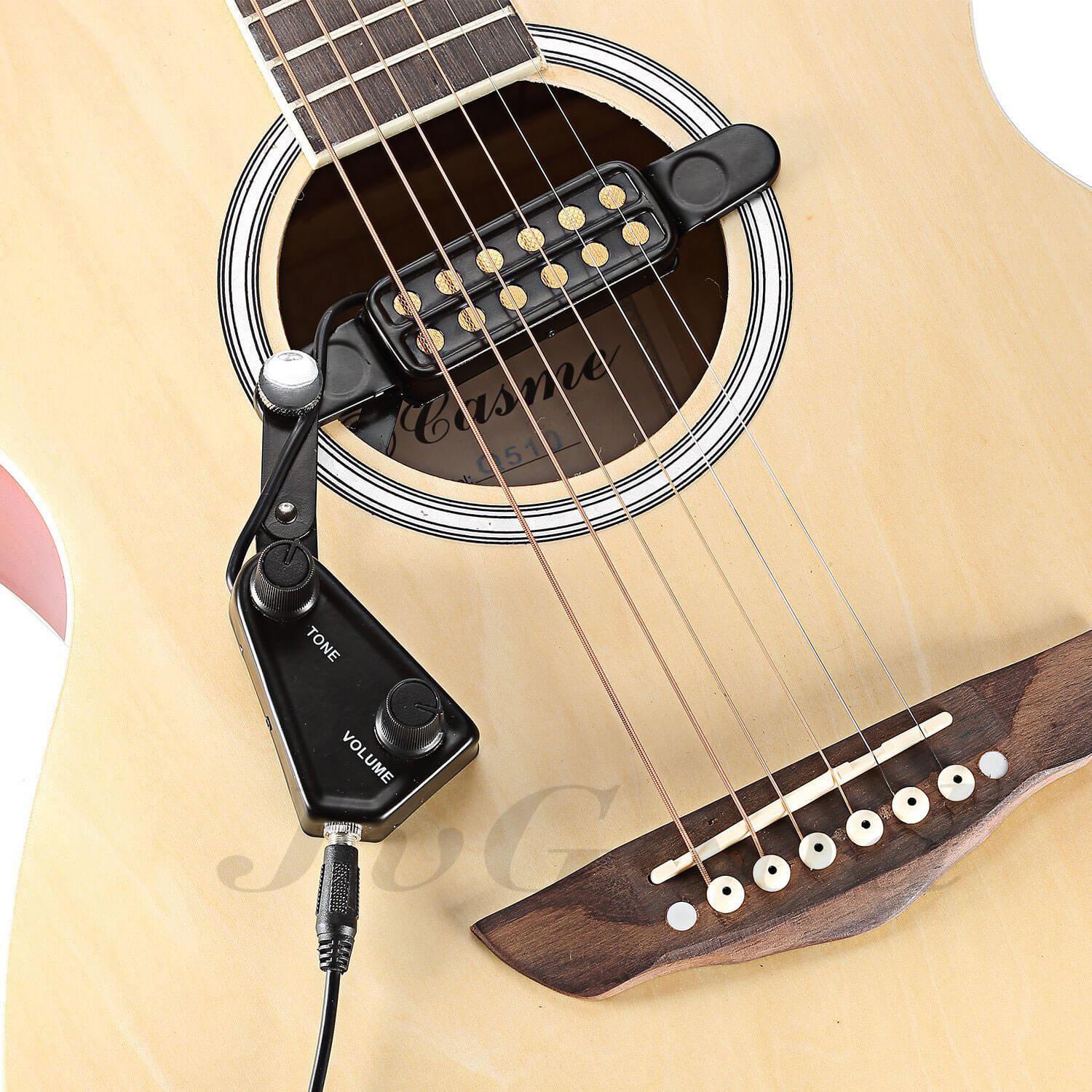 JvGood 12-hole Acoustic Guitar Sound Hole Pickup Magnetic Transducer with Tone Volume Controller Audio Cable