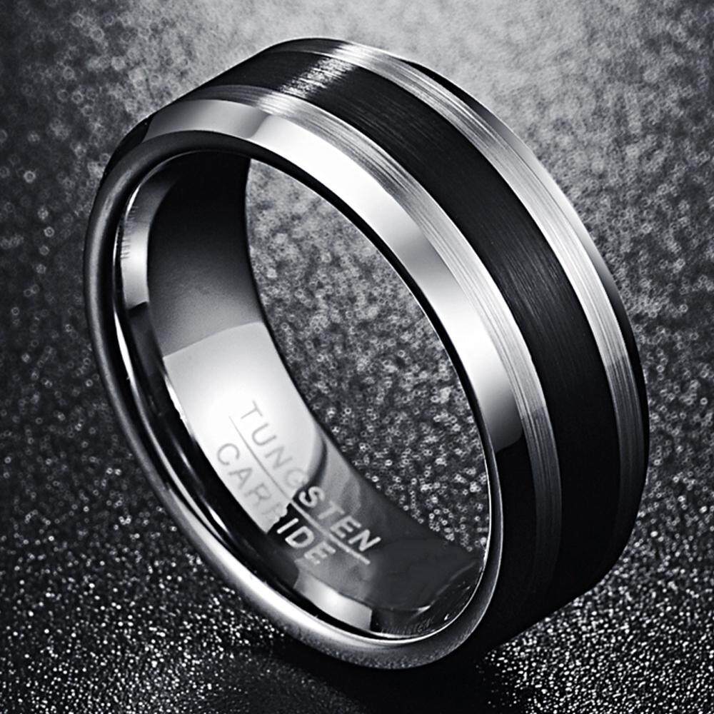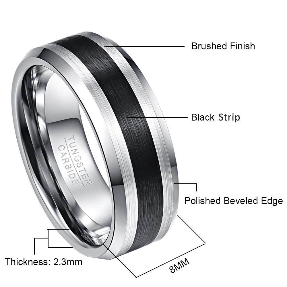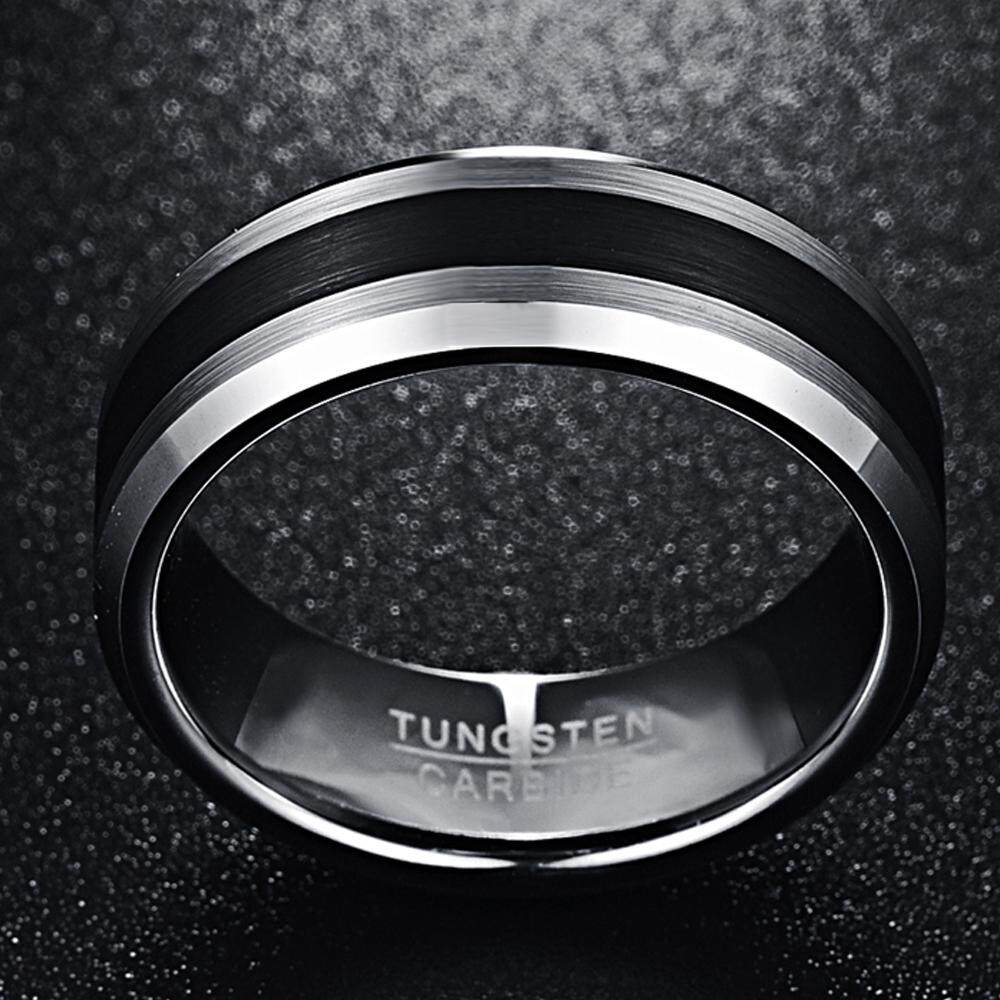 AVECON 【Support Engrave】Mens 8MM Tungsten Ring Brushed Finish and Black Center Beveled Edge Size 5 to 14