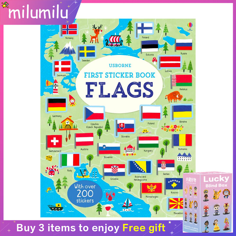 milumilu Usborne Original Popular Books First sticker book flags Colouring English Activity Picture Book for Kids
