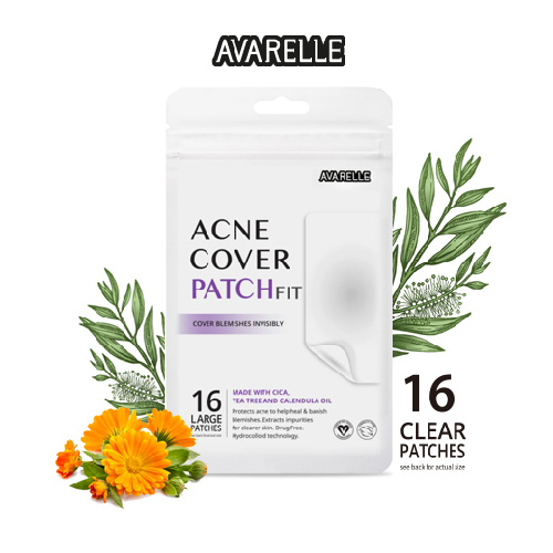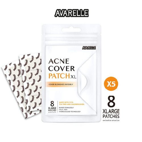Avarelle Acne Pimple Patch (XL Square / 8 PATCHES) Absorbing Hydrocolloid Spot Treatment with Tea Tree Oil, Calendula Oil and Cica, Vegan, Cruelty Free Certified