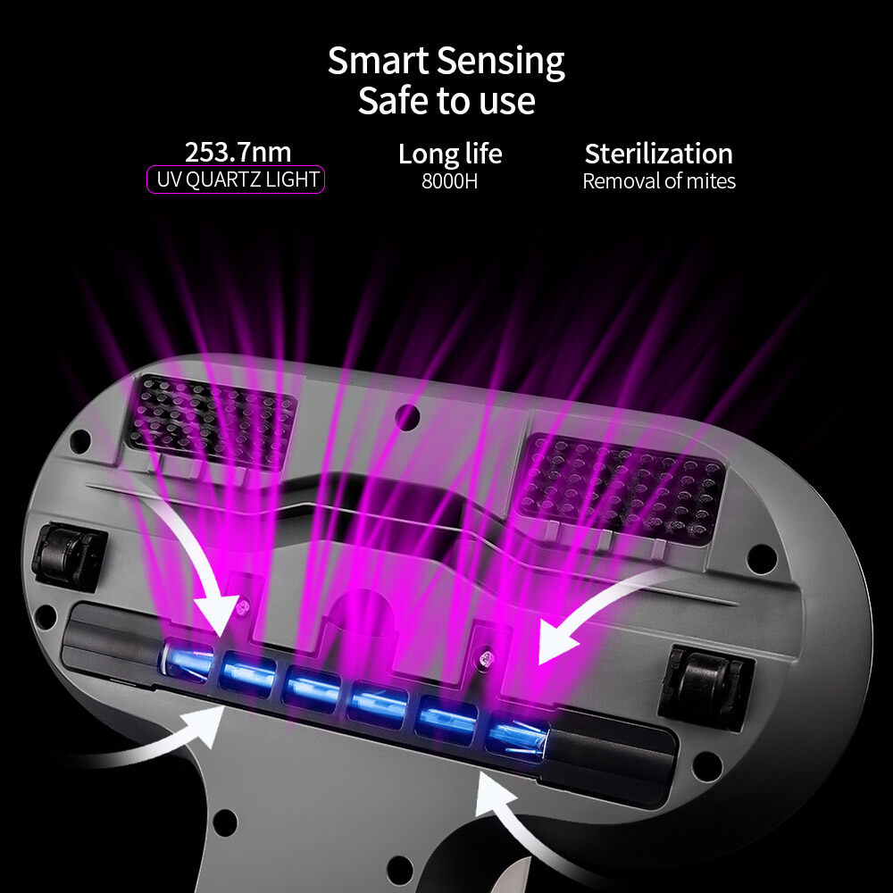 - The UV light automatically stops working when lift up over 30 degree or away from the cleaning surface, avoid direct exposure and damage to human skin