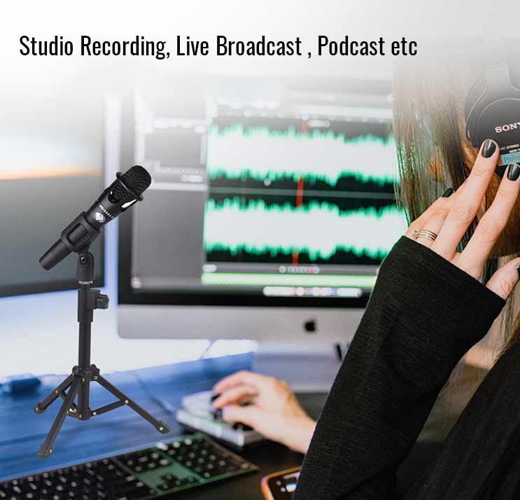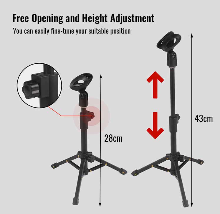 eDSLRs Foldable Desktop Table Microphone Extendable Tripod Stand Holder with Mic Clip for Meetings Live Zoom