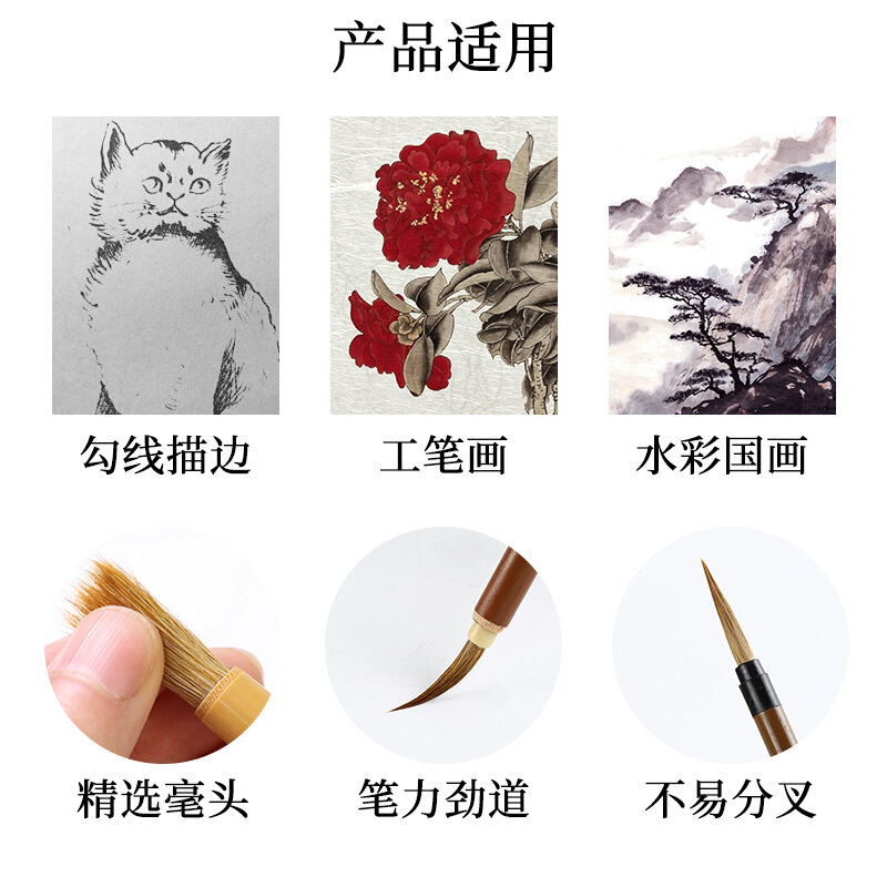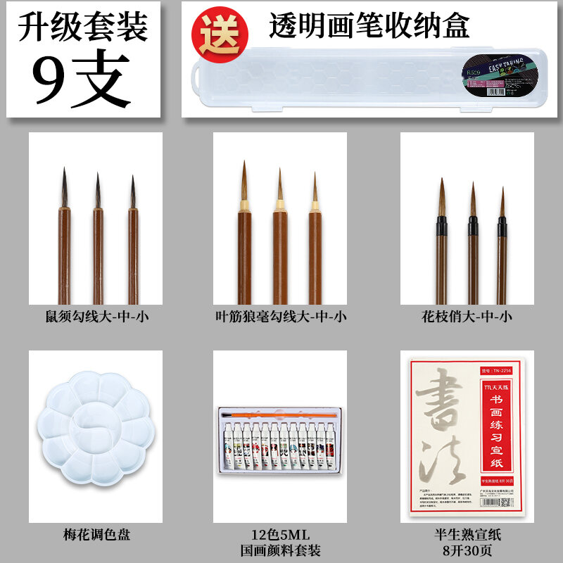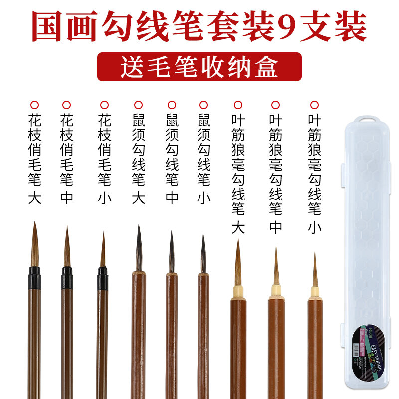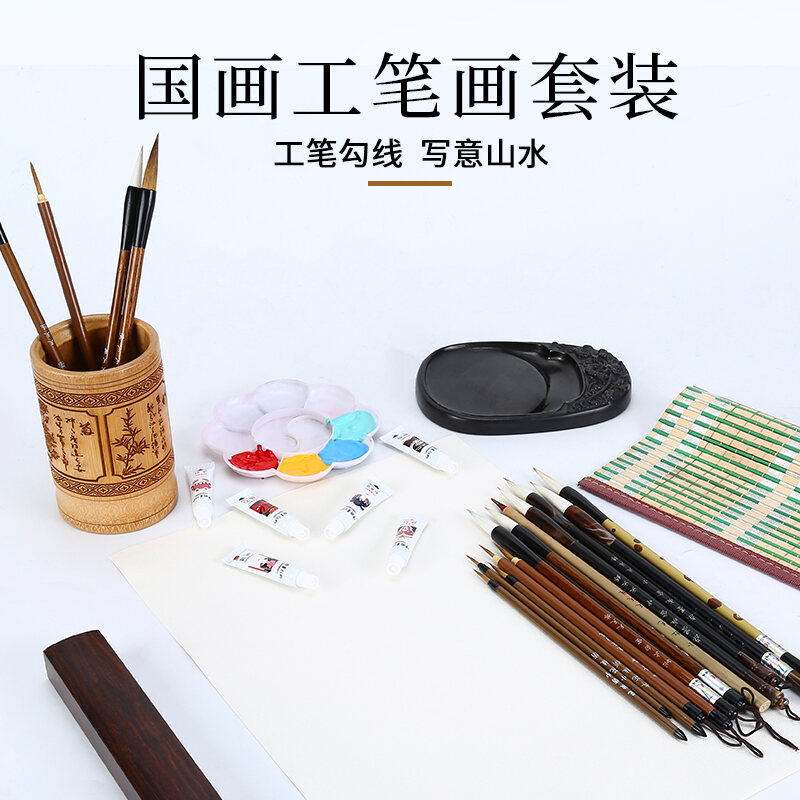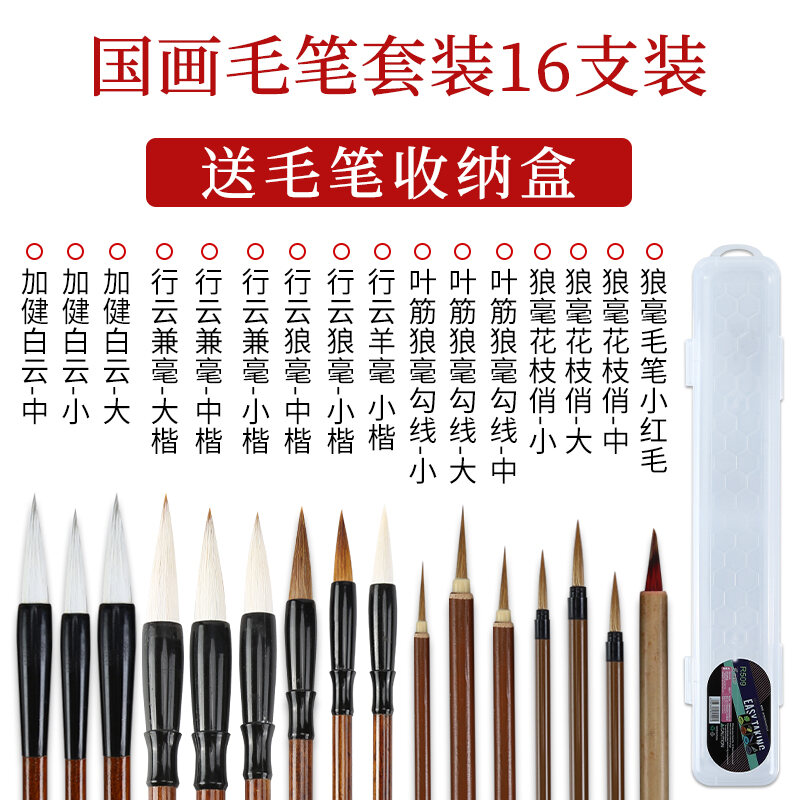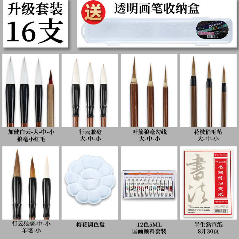 Chinese Painting Writing Brush Set Beginner's Full Set of Fine Brushwork Pen Chinese Landscape Freehand Painting Student Calligraphy Small Big White Clouds Painting Tools Professional Grade High-End W